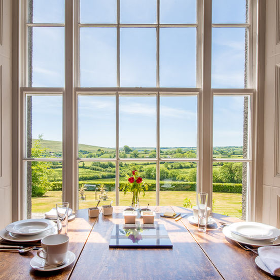 Large double aspect corner room with superb views stretching across the gardens, farmland, and Dartmoor. Waverley has a vast emperor size bed and spacious seating area to relax and enjoy the views. The stylish en suite bathroom is sprinkled with candles and has a large bath and separate luxury monsoon shower both generously stocked with White Company products.